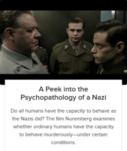 Do all humans have the capacity to behave as the Nazis did? The film Nuremberg examines whether ordinary humans have the capacity to behave murderously—under certain conditions. See my article in Psychology Today.